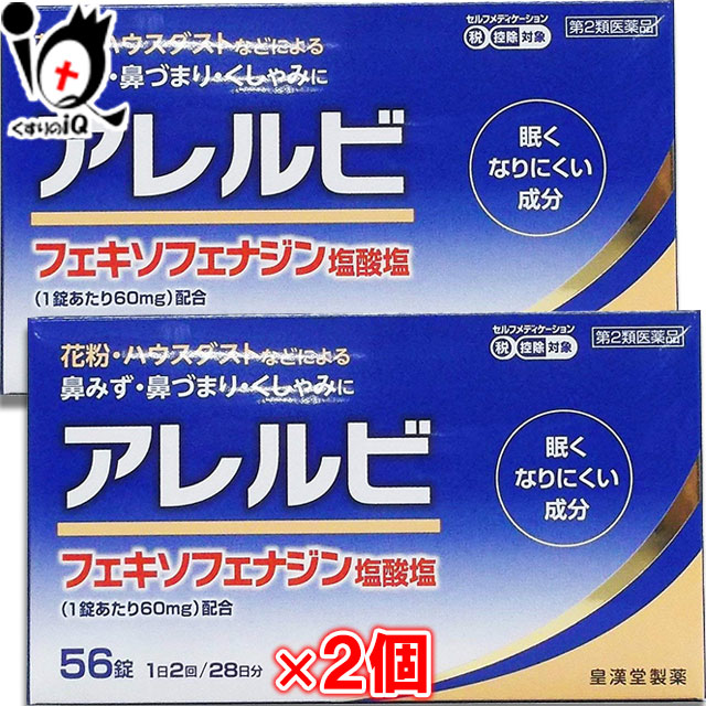 【第2類医薬品】★アレルビ 56錠×2個セット【皇漢堂製薬】鼻みず・鼻づまり・くしゃみに 花粉やハウスダストなどによるアレルギー性鼻炎 アレグラと同じフェキソフェナジン塩酸塩配合