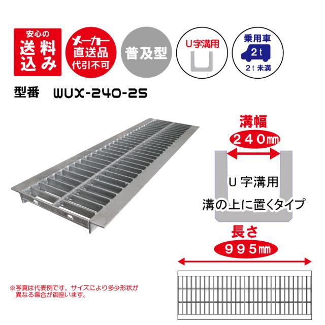 【送料込み】グレーチング WUX-240-25 普及型ノーマル適用溝幅240mm適用車種:乗用車 メーカー直送品・代引き不可