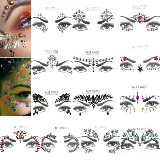 フェイス用(目元・アイブロー用) ジェムボディステッカー 1シート 貼る シール アクセサリー クリスタル レディース 女子 大人 セクシー ダンス 身体 腕 顔 腹 ラインストーン アイシャドウ アイライン 眉 涙 メイク ピンク グリーン オレンジ レインボー 星 ハート