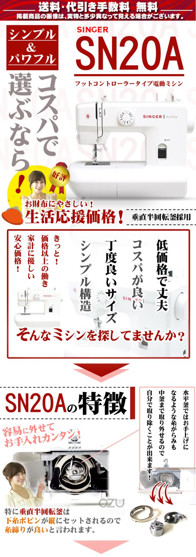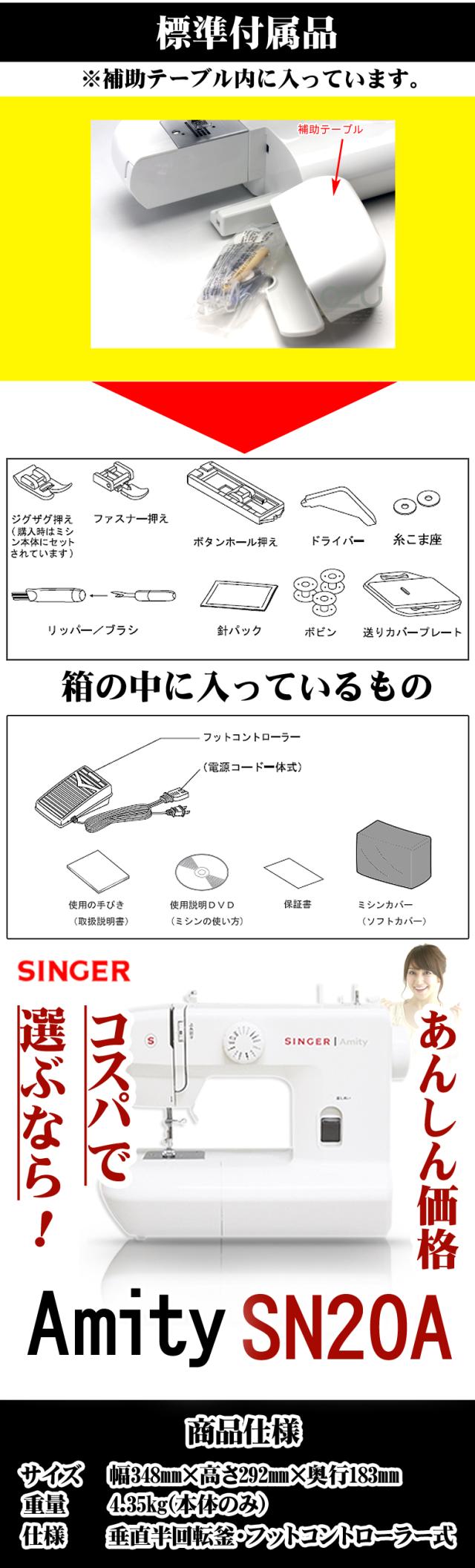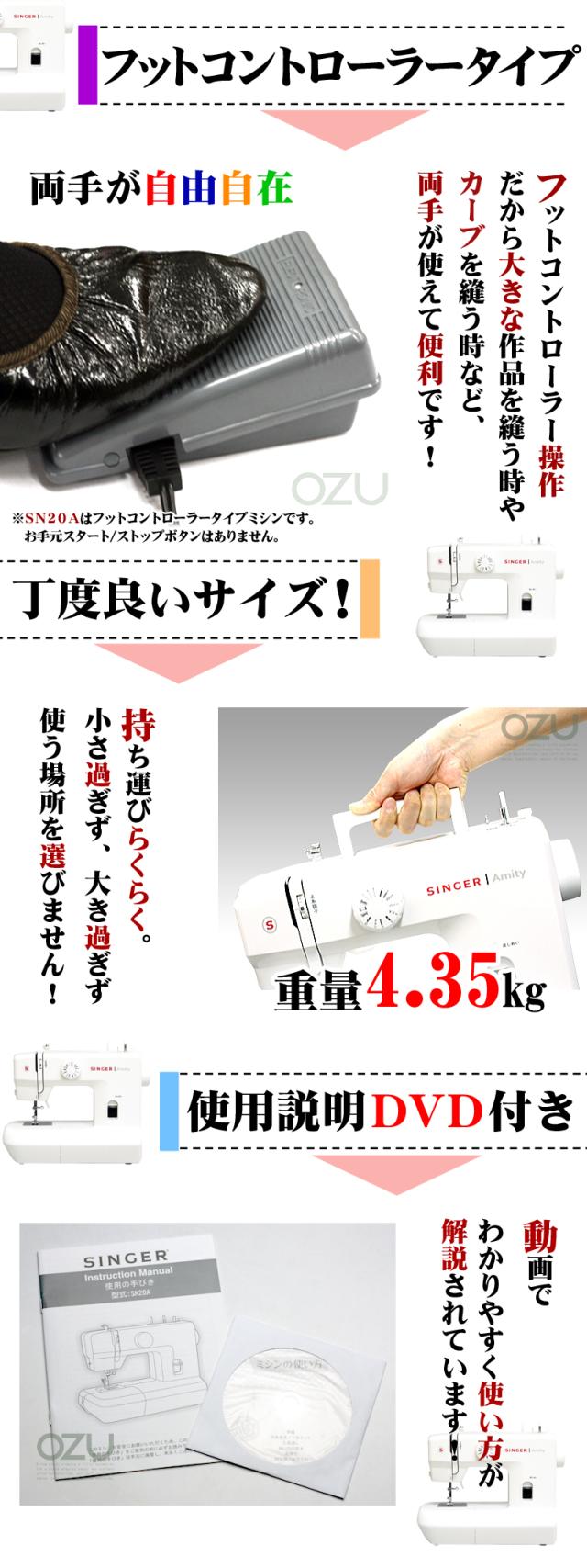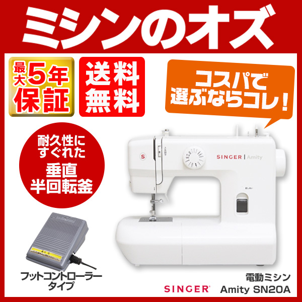 シンガー ミシン 本体 電動ミシン コンパクト Amity SN20A SN-20A フットコントローラー付き【送料無料】 初心者 簡単