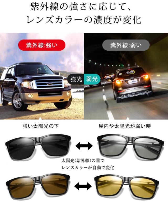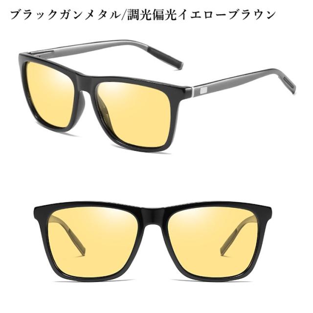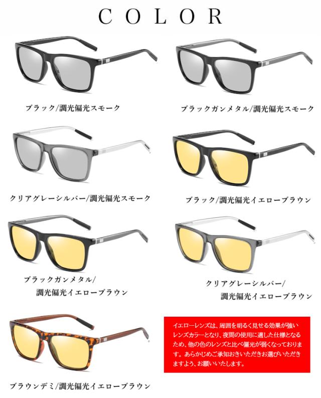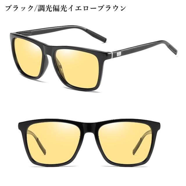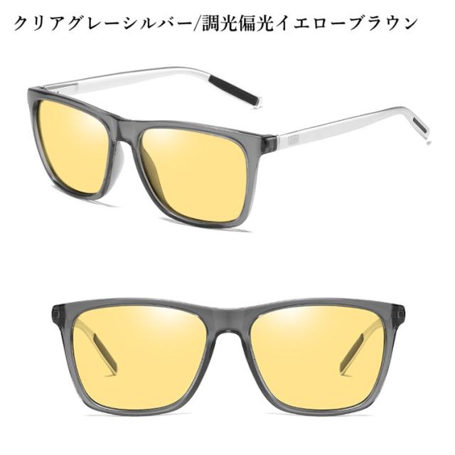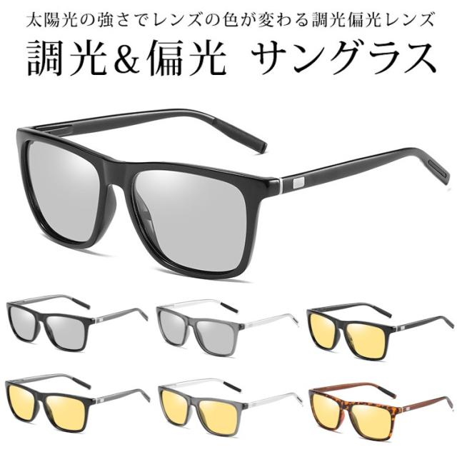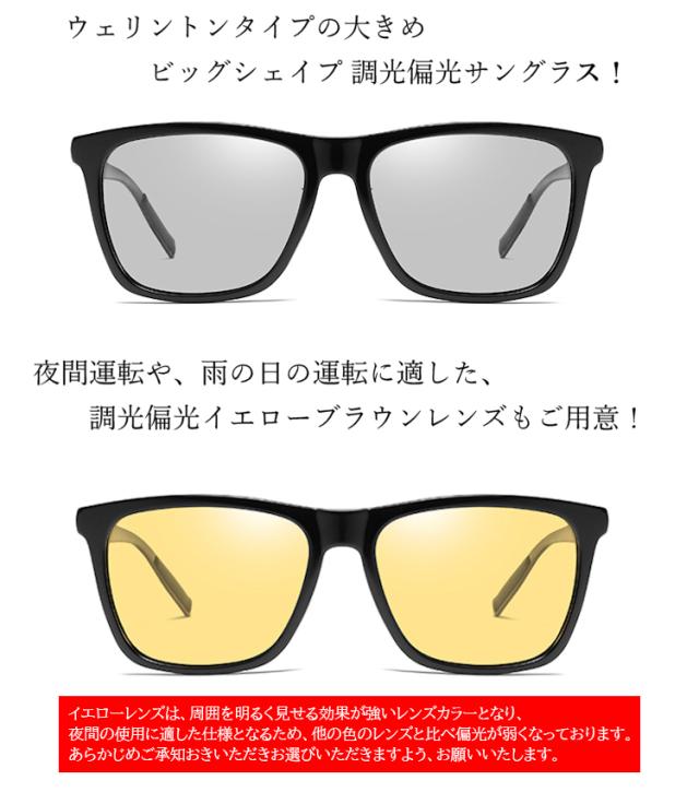調光サングラス サングラス 偏光 レディース メンズ UVカット ウェリントン 大きめレンズ 軽量 釣り ドライブ 車 運転用 車 夜間運転 スポーツ ゴルフ アウトドア レジャー バネ蝶番 鼻盛り低め ケース付き ao044 カラーレンズ