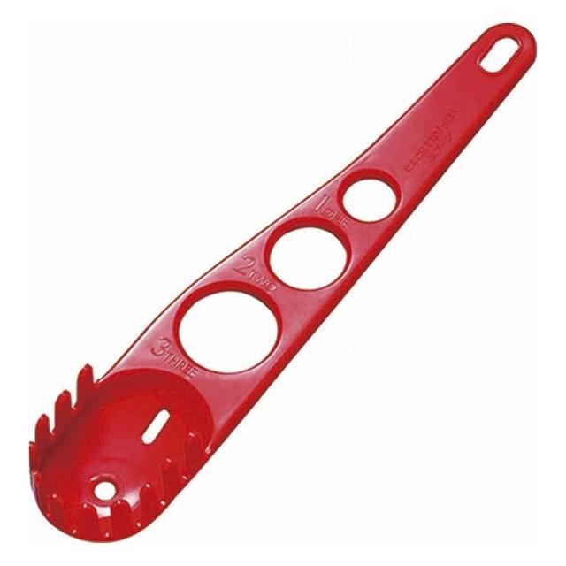 本体持ち手の穴がパスタメジャーとして使用できます!スパゲッティ1人分・2人分・3人分の分量がはかれます。麺類や、ゆで卵を鍋からすくうのにとても便利です。