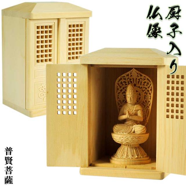 総桧【格子扉厨子入り仏像】普賢菩薩・守り本尊・御本尊:送料無料