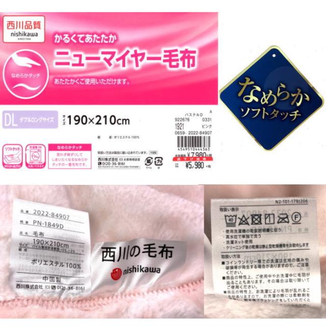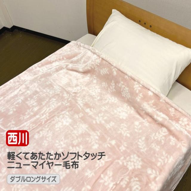 西川 毛布 軽くてあたたか ニューマイヤー毛布 ソフトタッチ ダブルロングサイズ 190x210cm ピンク (N-922676-0331/2022-84907) 送料無料