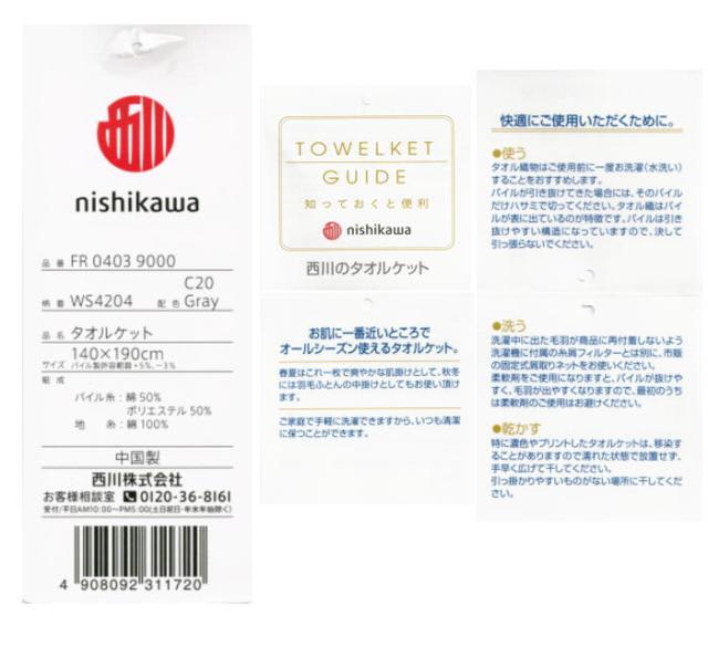 西川 オールシーズンタオルケット シングル 140×190cm(NK-FR04039000)(WS4204)送料無料