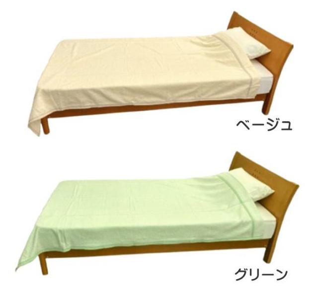 西川 日本製 訳あり アウトレット タオルケット ベージュ/グリーン(AK-202504)