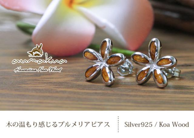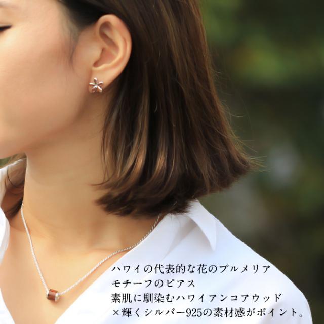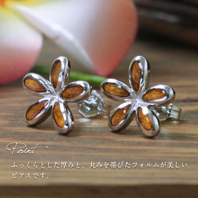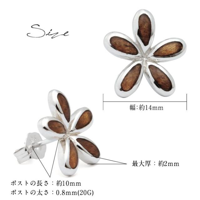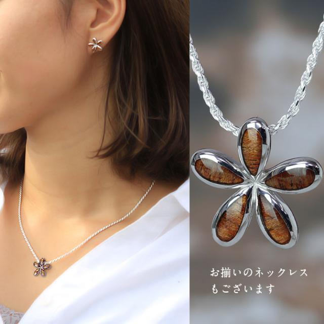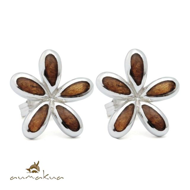 ハワイアンジュエリー コアウッド ピアス フラワープルメリア コアウッド シルバー925 ロジウムコーティング キャッチ aumakua 20G ゲージ メンズ レディース 誕生日 プレゼント ホワイトデー 卒業式 入学式 【品番:033-62-01】