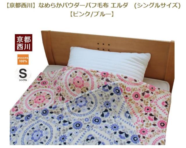 ●京都西川 なめらかパウダーパフ毛布/エルダ (シングルサイズ)