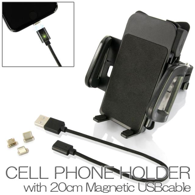 USBポート付きスマホホルダーと、20cmのマグネット式USBケーブルのセットです。