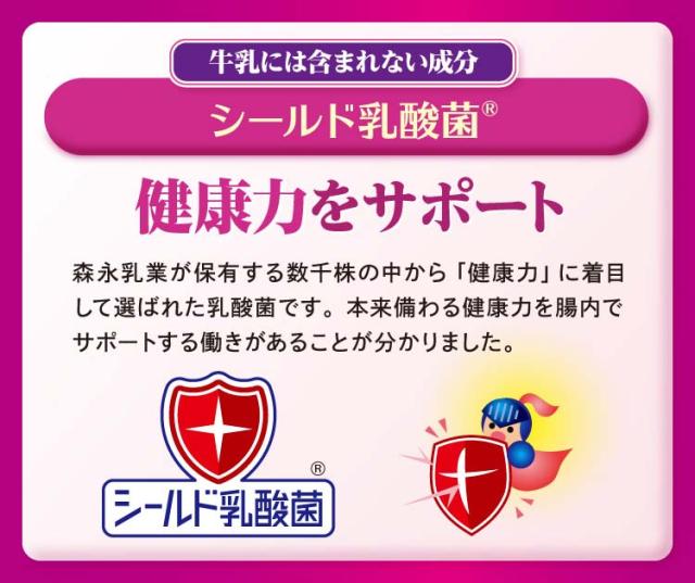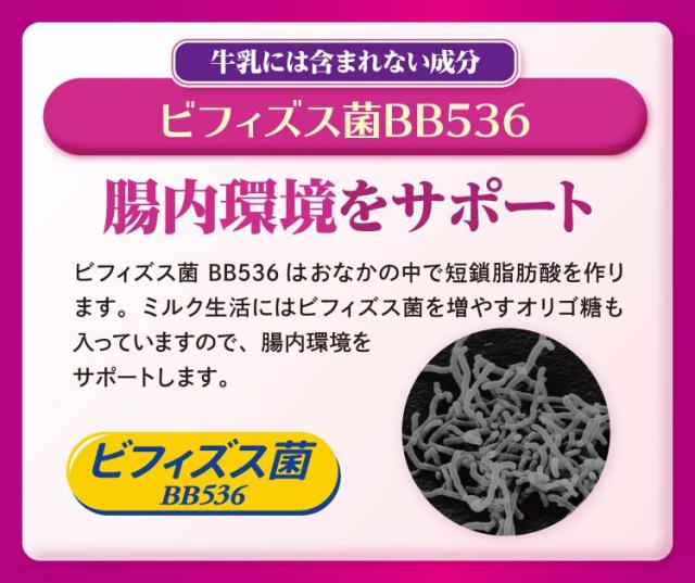 ●高たんぱく、高カルシウムに加えて、牛乳では摂りにくいラクトフェリン、ビフィズス菌BB536、シールド乳酸菌(R)も摂ることができます。