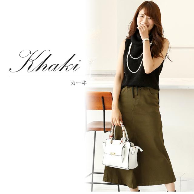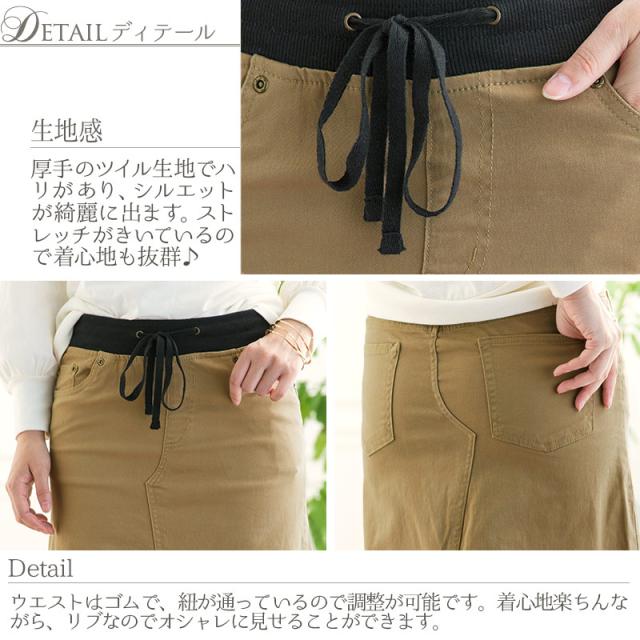 wc0109 スカート レディース カーゴスカート ウエストリブ チノ シンプル ゴムスカート ミリタリー 美脚 ストレッチ ツイル カジュアル チノ 20代 30代 40代 50代 ママ 大きいサイズ 大人 おしゃれ 春 夏 秋冬 他と被らない 同窓会 成人式 韓国 冬