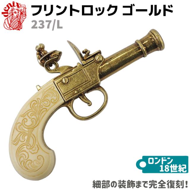 DENIX デニックス 237/L フリントロック ロンドン ゴールド 17cm レプリカ 銃 フリントロックピストル リアル コスプレ 小物 模造 ピストル 拳銃 ポイント消化