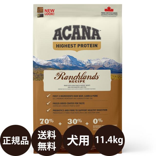 | 商品説明 | アカナのドッグフードは、全ての原材料にこだわり最高品質のものを使用。「アカナ ハイエストプロテイン ランチランドドッグレシピ」はアカナのラインナップの中でも特に高タンパク質な、赤身肉をベースとしたドッグフードです。牧場でのびのびと飼育された牛、豚、子羊、淡水魚、バイソンなど高品質な動物原材料を70%、毎日キッチンに届けられる新鮮なフルーツや野菜、ハーブを30%の比率で配合しています。人工着色料、人工香料、人工保存料無添加で、ペットにとって自然な食事を再現しました。食べつきが良く偏食ぎみの子にオススメです。 こんな方におすすめです。 ・運動量が多いワンちゃんに ・偏食ぎみのワンちゃんに |