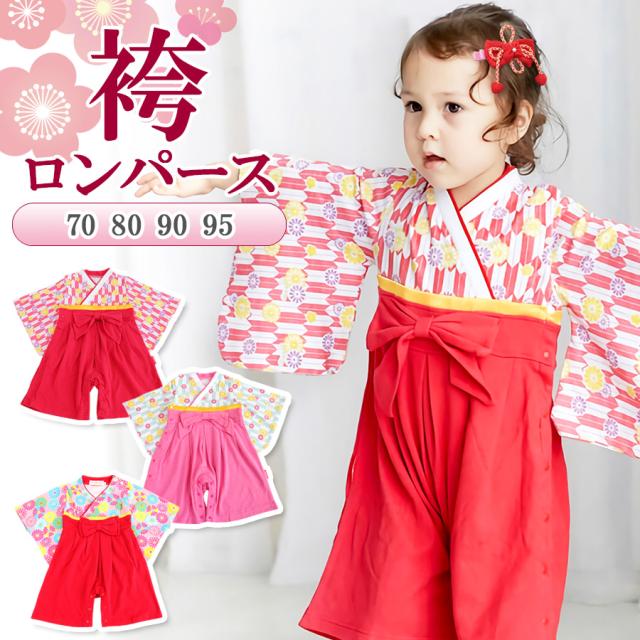 袴 ロンパース カバーオール ベビー服 赤ちゃん 女の子 ひなまつり お正月 節句 ひな祭り 衣装 お宮参り 百日祝い 七五三 ギフト 出産祝い 子供 プレゼント メール便