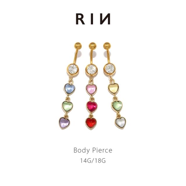へそピアス 14G 18G ボディピアス ハート ジュエル チャーム へそぴ 軟骨ピアス かわいい 可愛い 通販 凛 片耳 1個売り