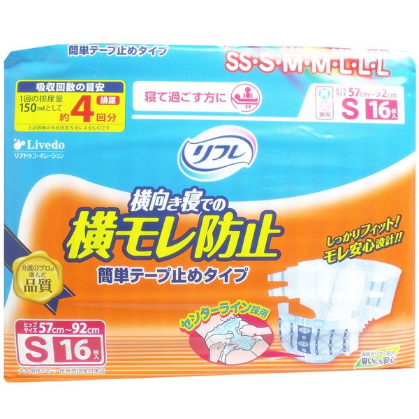 リフレ 大人用紙おむつ 介護 横漏れ防止 簡単テープ止めタイプ 男女兼用 Sサイズ 16枚×4セット