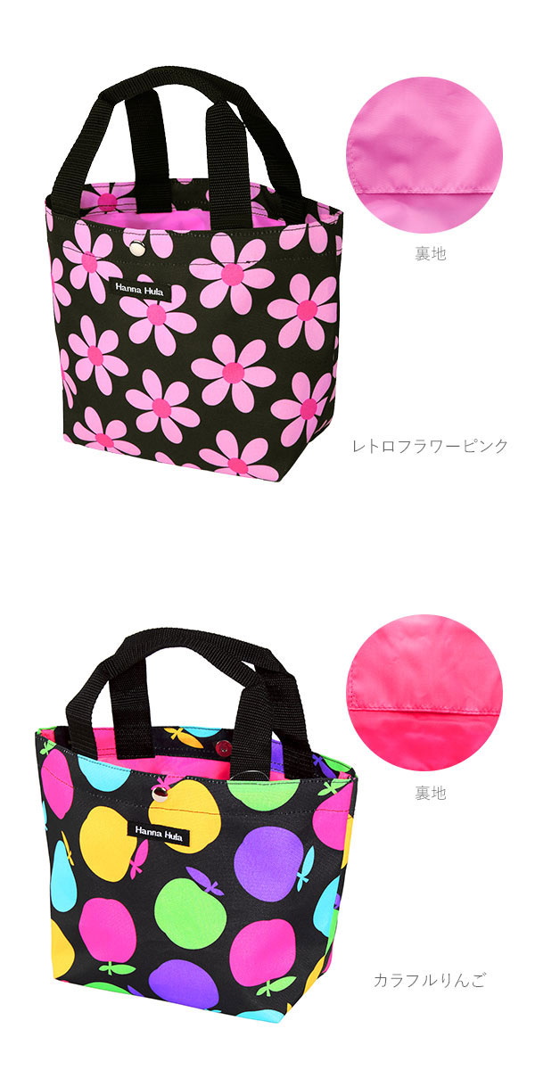 トートバッグ レディース ブランド 通販 小さめ 布 軽い ナイロン おしゃれ かわいい ランチバッグ 軽量 ジラフ ブラック カモフラージ お散歩 かばん カバン 鞄 ハンナフラ りんご レトロフラワーピンク ミニトートバッグ