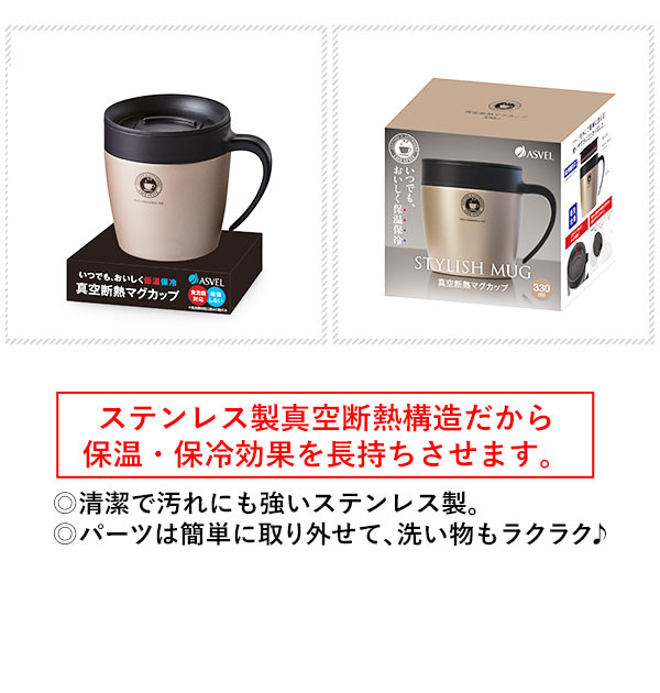 マグカップ アスベル ASVEL 通販 保温 フタ付 おしゃれ 330ml かわいい 保冷 メタリック グレー パール ホワイト 白 ゴールド ステンレス 真空 断熱 長持ち ドリップ ドリッパー スライドフタ 清潔 飲みやすい 食洗機 パッキン マグボトル マグ