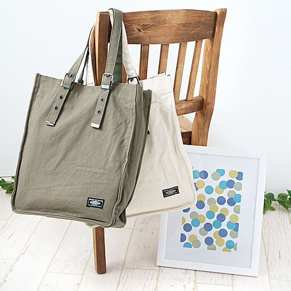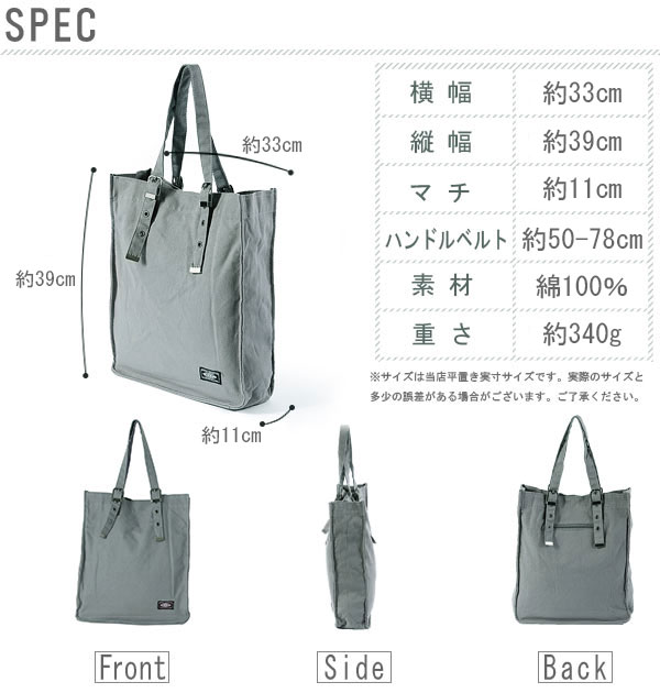 | 商品説明 | 持ち手部分がベルトデザインになった縦型トートバッグです。背面にもファスナーポケットがあり、すぐに取り出したい物の収納に便利です。内側には、携帯電話などの小物の収納に便利なオープンポケットがあります。底には底板入り。マチ幅もあり、A4ファイルが入るトートバッグなので、通勤・通学に大活躍します! |