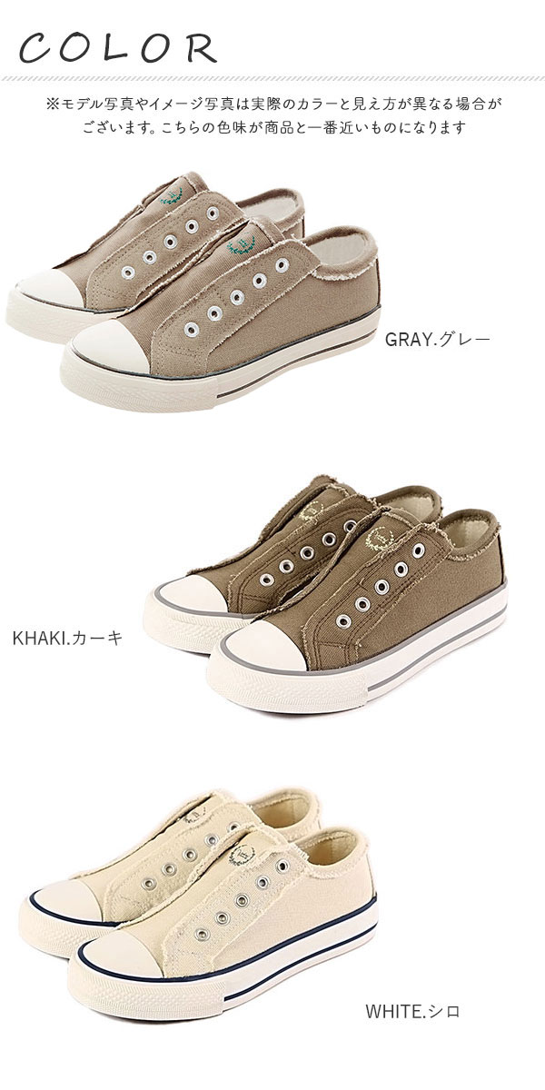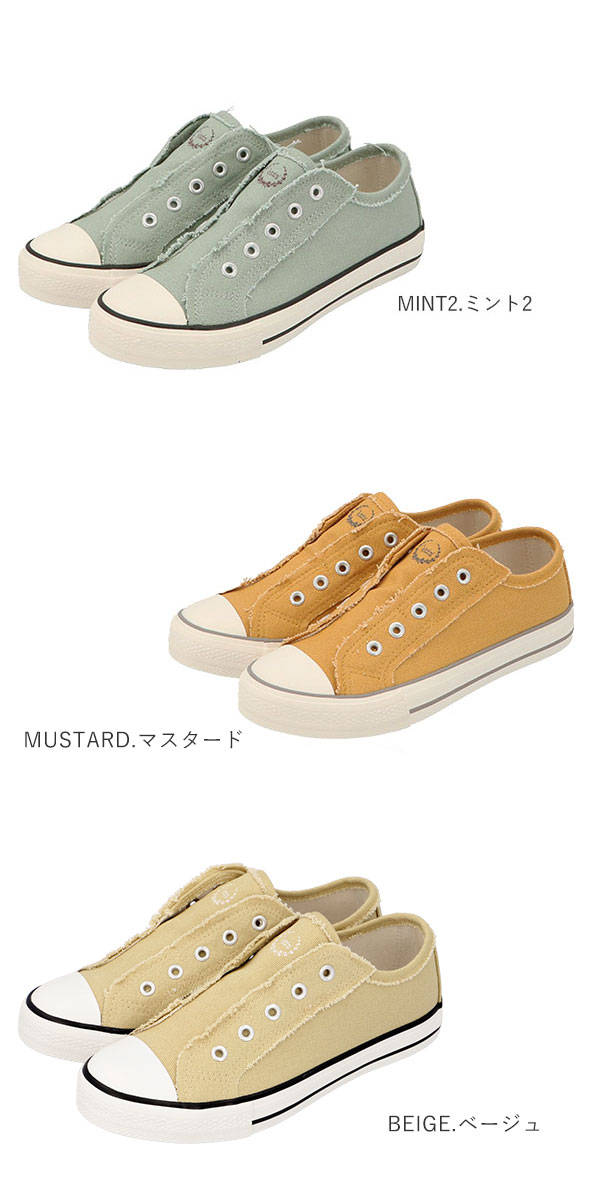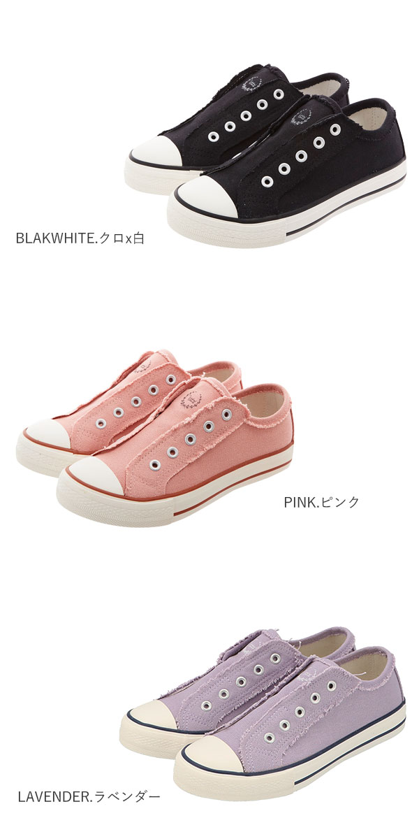 | 商品説明 | デイリーに活躍☆おしゃれで履きやすいスリッポンスニーカー。紐無しタイプのすっきりとしたデザインは、デイリーの着こなしに大活躍!ベロ部分の内側がゴム仕様になっており、脱ぎ履きラクチンです。カラーによって印象が異なるので、お気に入りを選んで♪ |