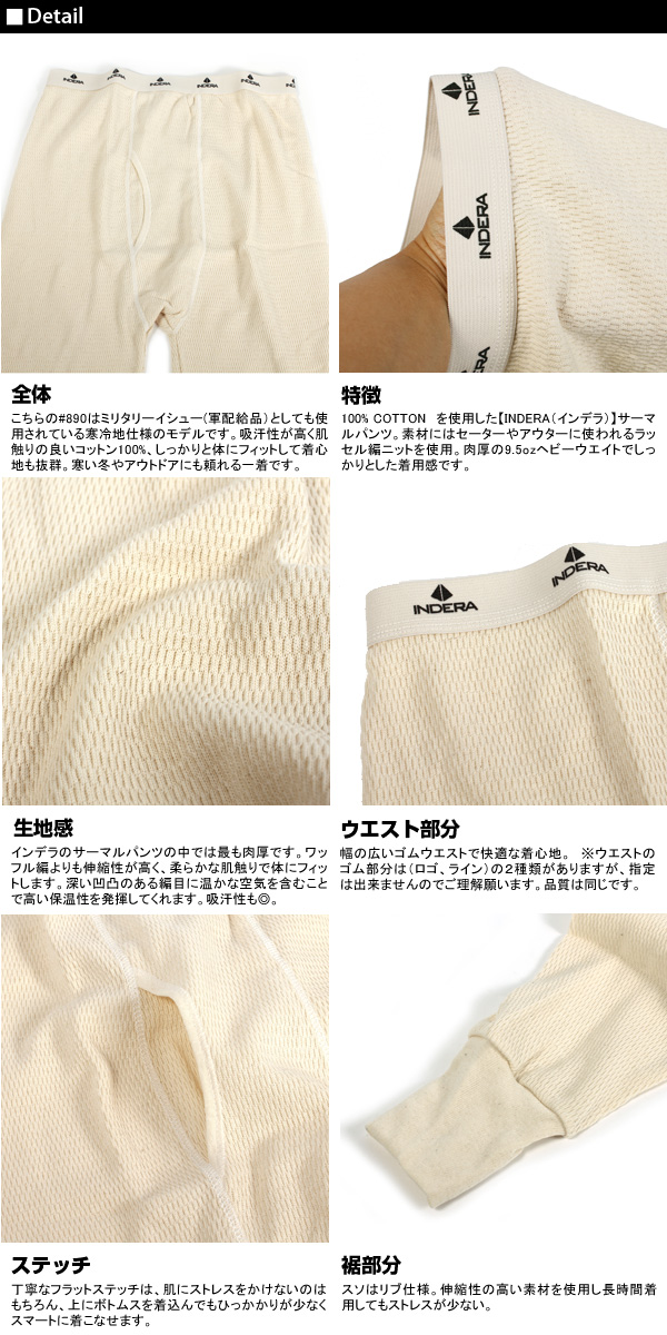 【キーワード】インデラミルズ INDERA イン 股引 定番 スパッツ パンツ レギンス サーマル 肉厚100%コットン MILLS