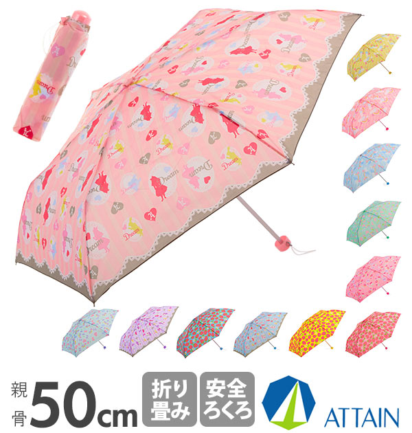 折りたたみ傘 50cm 女児 ATTAIN アテイン 通販 子ども こども用 子供用 軽め 軽い 軽量 軽量楽々ミニ 女児 女の子 小学生 女子 傘 かさ 雨傘 コンパクト 通学 置き傘 かわいい 可愛い ピンク 黄色 イエロー 紫 パープル サックス 水色 ミント ガールズ 折畳み傘 折り畳み傘