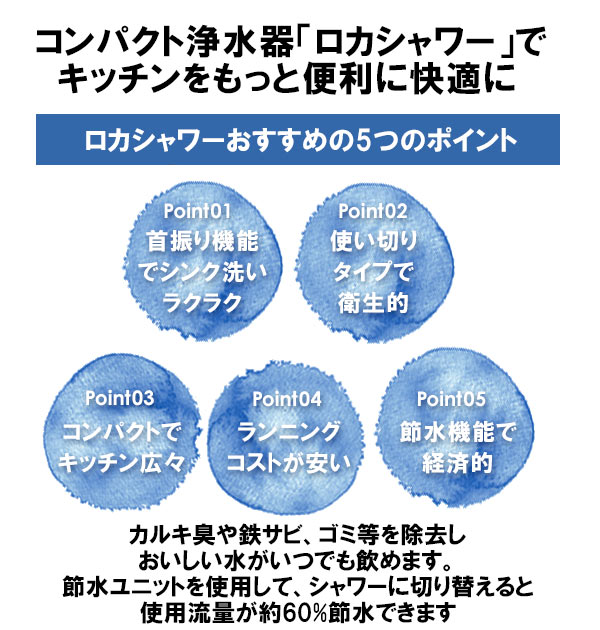 浄水器 クリタック KURITA 通販 首振りタイプ ロカシャワーCP 浄水蛇口 泡沫水栓 節水効果 塩素 カルキ除去 切り替え 活性炭 不織布 おいしい水 シャワー ストレート キッチン 洗面所 ろ過 ろか 水栓 水道水