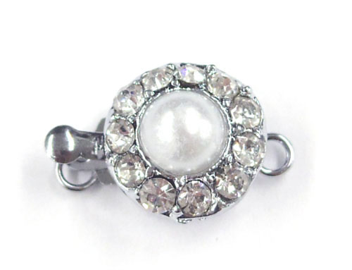 ネックレスクラスプ。パールネックレスの留め具に使用されるクラスプ。真ん中がパールデザイン、周りにストーンが並んでいて華やかなデザインです