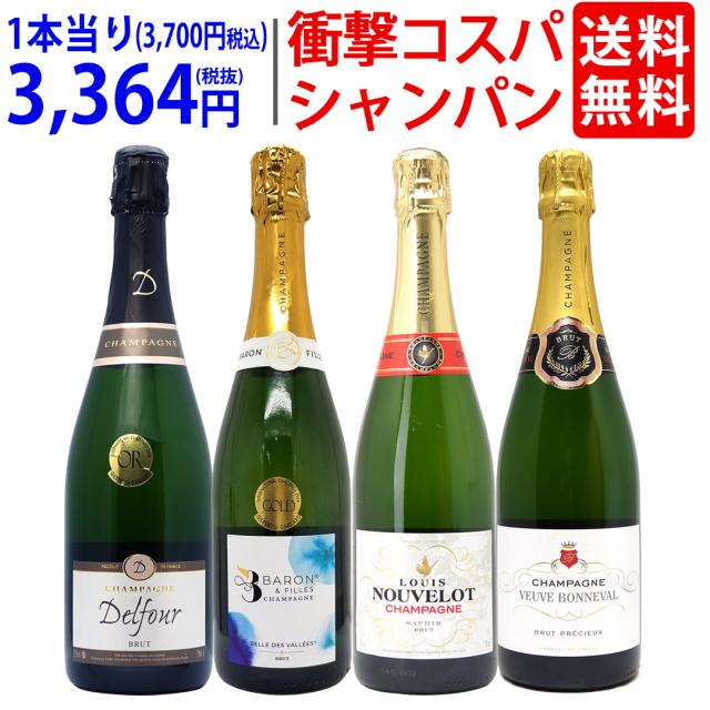 ワイン ワインセット 衝撃コスパ 全て豪華シャンパン(フランス シャンパーニュ産)4本セット 送料無料 ^W0CX61SE^