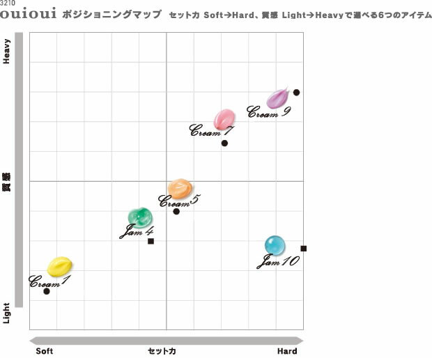 多彩なデザイン。理想の髪型をつくる、たしかなスタイリング力と持続性。「3210 ouioui」は、見て、触れて、楽しく、ヘアデザインをゆたかにする、スタイリング&コミュニケーションツール。肉食系も草食系も、思いのまま。さあ、本能を呼び覚まそう。