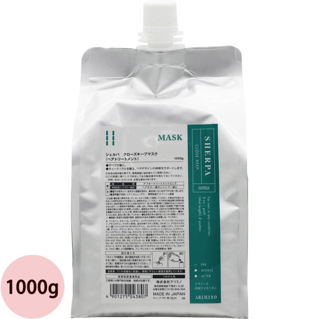 アリミノ シェルパ クローズキープマスク / 1000gリフィル トリートメント 美容室 サロン専売品 カラーヘア 褪色 防止 色落ち カラーケア ツヤ なめらか ARIMINO