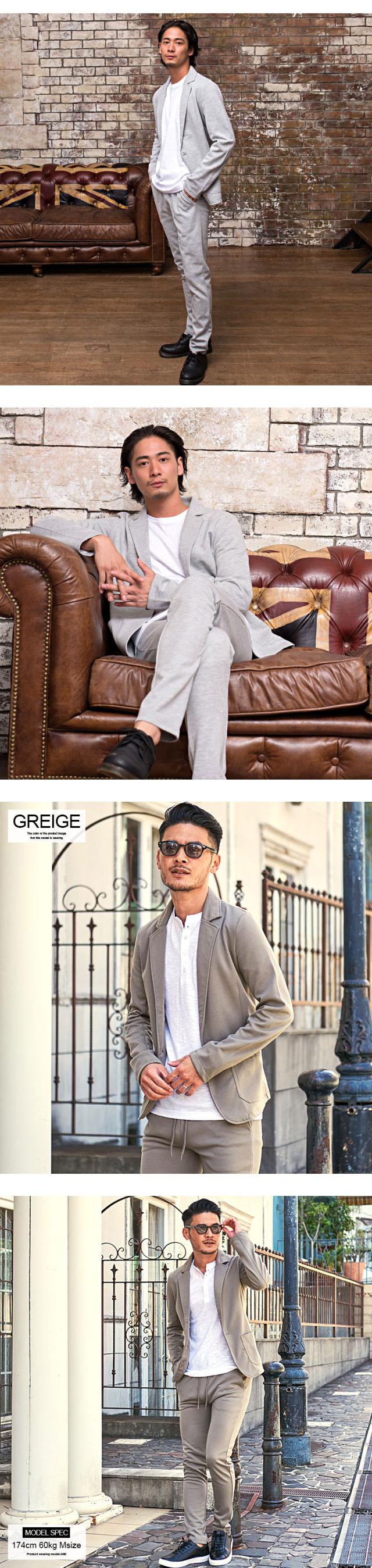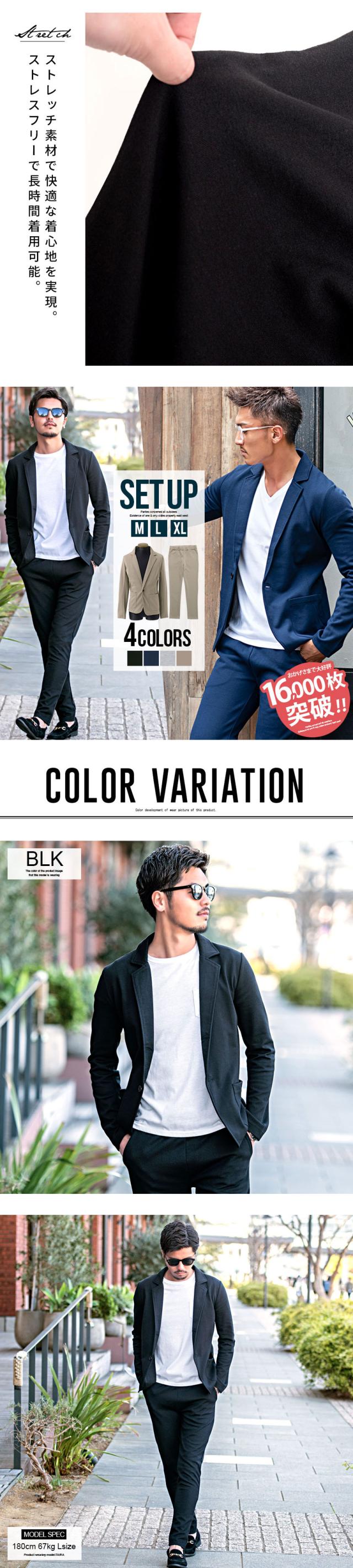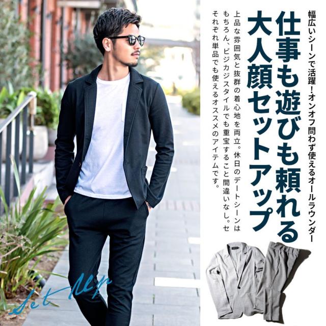 【送料無料】セットアップ メンズ 上下 カジュアルスーツ テーラードジャケット スラックス 細身 スリム テレワーク リモートワーク 在宅勤務 大人 ビジネス フォーマル きれいめ 上品 パーティー 結婚式 二次会 ブラック ネイビー グレー ベージュ 黒 即日発送 [VIJP18-16]