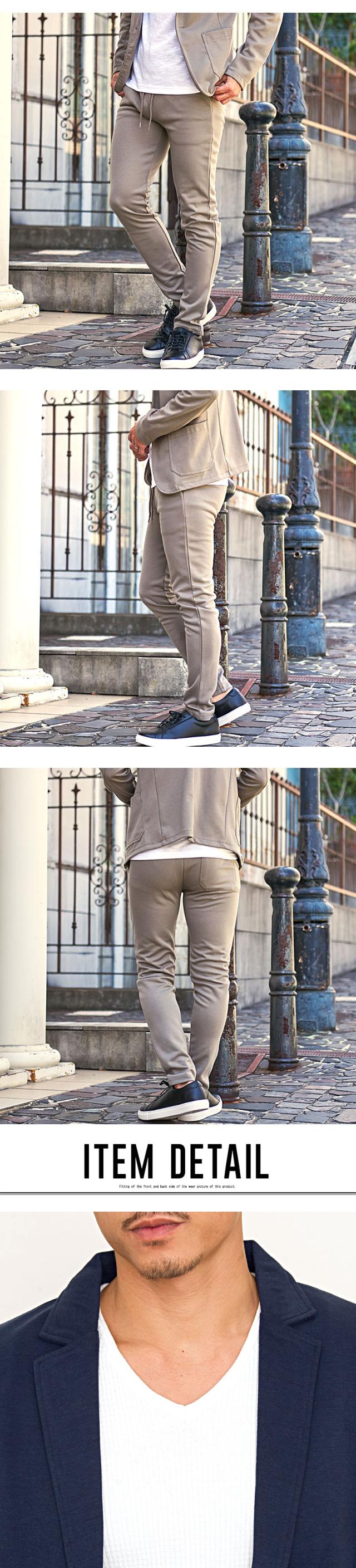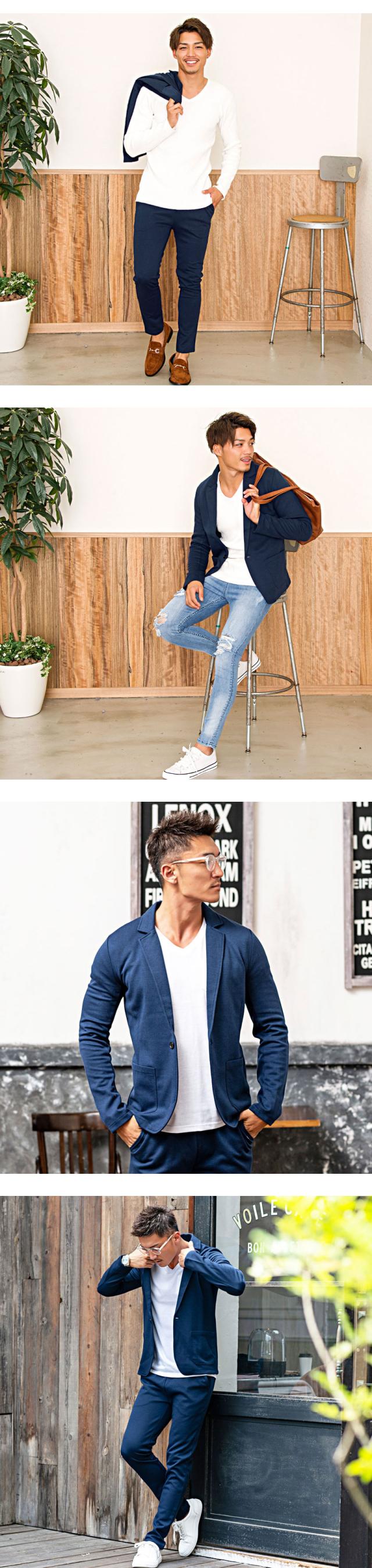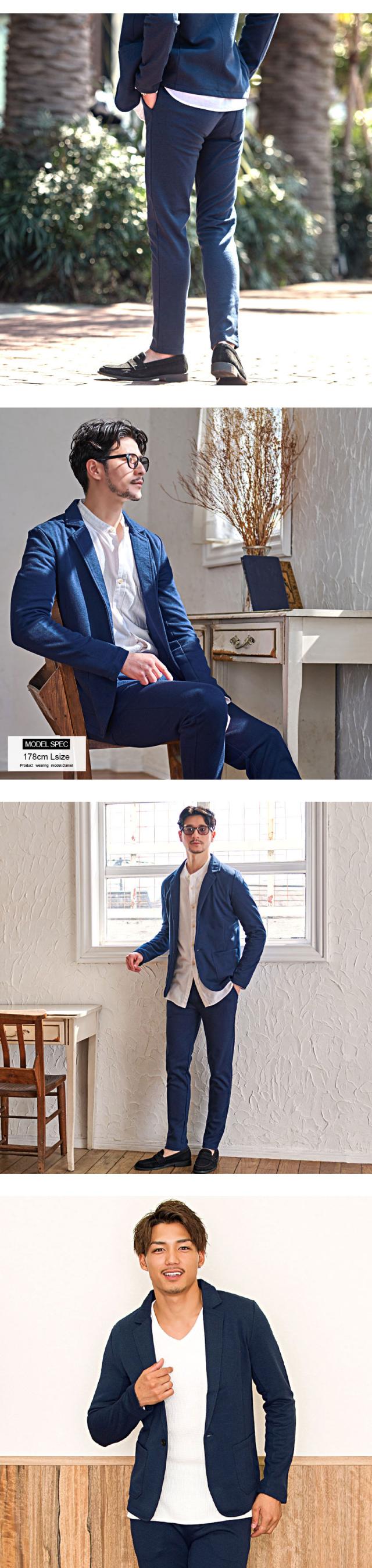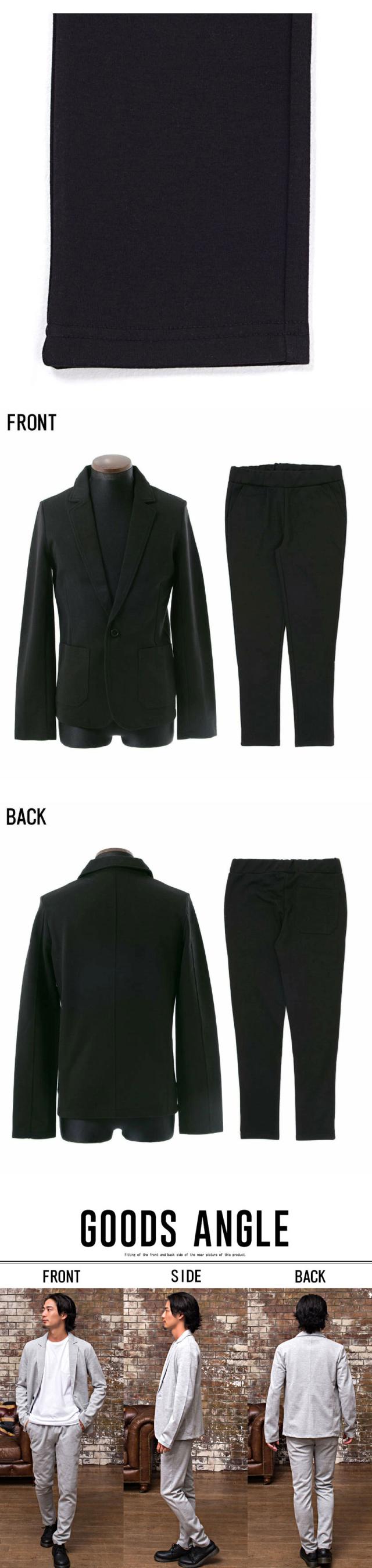 シンプルでベーシックなデザインのテーラードジャケットとイージーパンツの2点セット。