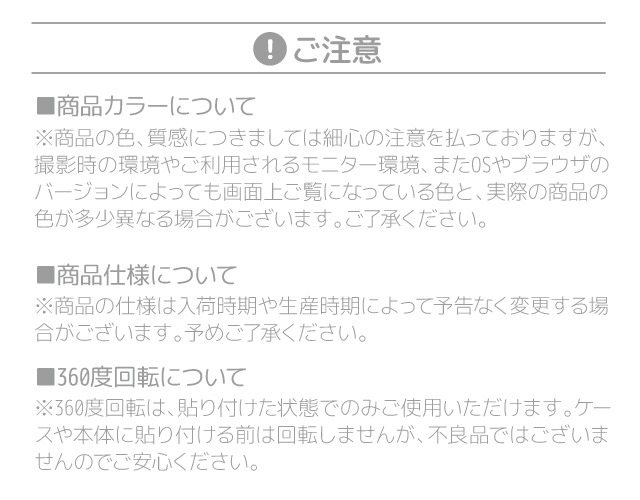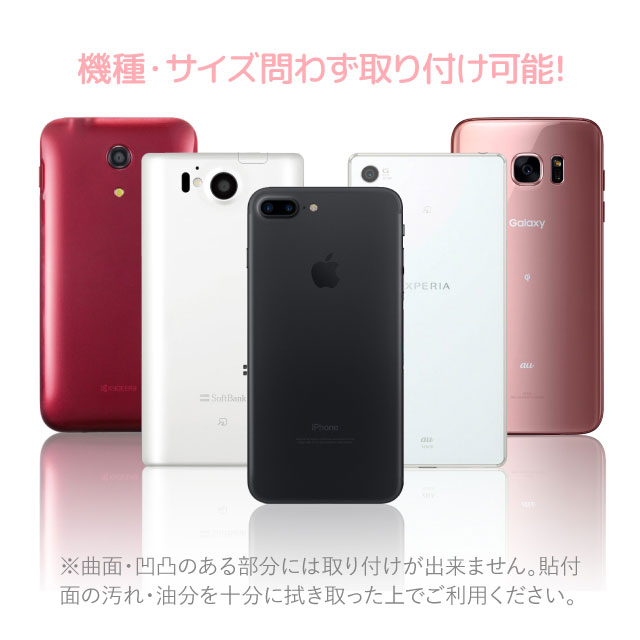 ●スマホリングが使用可能なケースは、現在確認できている限りではハードケース(印刷・クリア)とSWITCHケースのみです。それ以外のミラー・背面ガラス・TPUには貼り付けができません