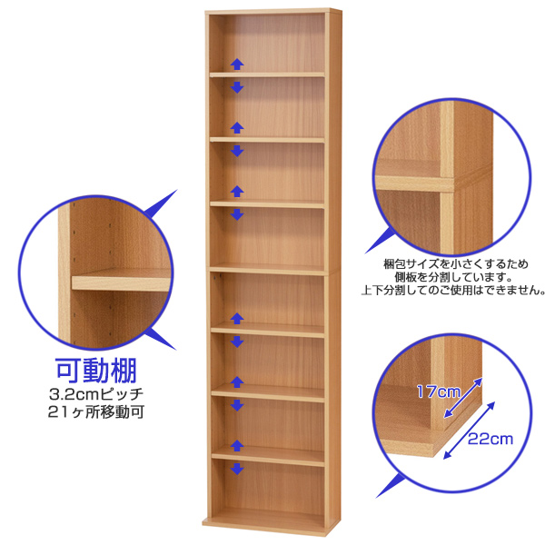 本棚 浅型 文庫書棚 8段 幅45cm ( 棚 書棚 ラック 収納 ブックラック マガジンラック ブックシェルフ 本収納 大容量 薄型 )