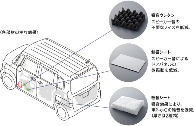 車外のノイズの入り込みや、スピーカー背面の振動を低減。