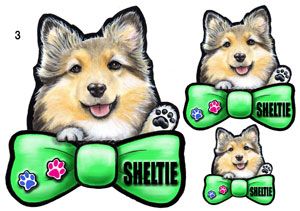 ネーム入れ不可/リボン犬ステッカー/シェルティ3/犬/リボンステッカー/シール/車/愛犬/雑貨/グ