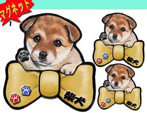 リボン犬ステッカー/柴犬1/リボンマグネット/犬/マグネット/犬/雑貨/グッズ/ネーム入れ不可/愛