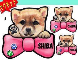 リボン犬ステッカー/柴犬4/リボンマグネット/犬/マグネット/犬/雑貨/グッズ/ネーム入れ不可/愛