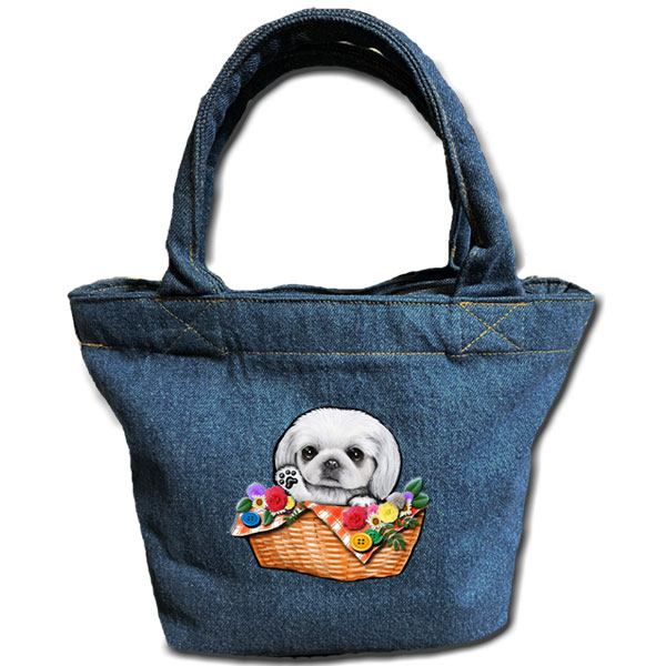 お散歩バッグ/ファスナー付デニムトートバッグ/ペキニーズ11/お散歩バッグ/犬/お散歩バッグ/キャンバス/愛犬グッズ/雑貨/ペキニーズ/ペット/オリジナル/犬雑貨/ペキニーズ/お散歩バッグ/ペキニーズ/グッズ/雑貨