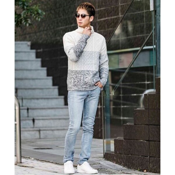 ともすると着膨れしそうな肉厚セータ−ですが、こちらは細身で洗練されたシルエットラインなのですっきりアーバンな雰囲気で着こなしが可能す。