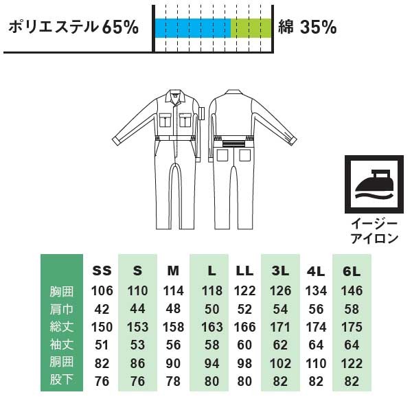 カラーつなぎ服 SS~3L