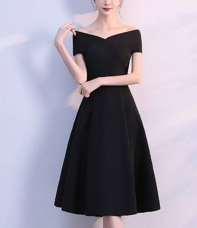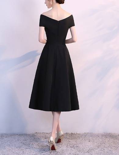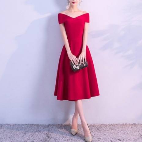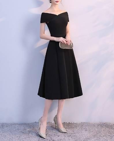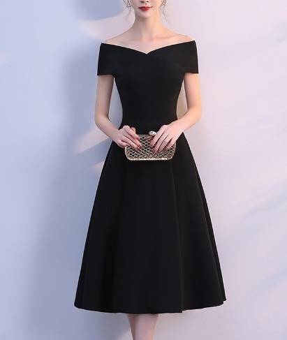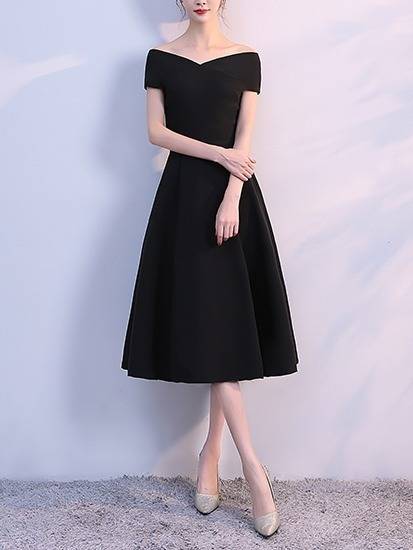 パーティードレス フレア オフショルダー 3色 Aライン ミディ丈 無地 エレガント フェミニン シック ドレス 結婚式 お呼ばれ ワンピース