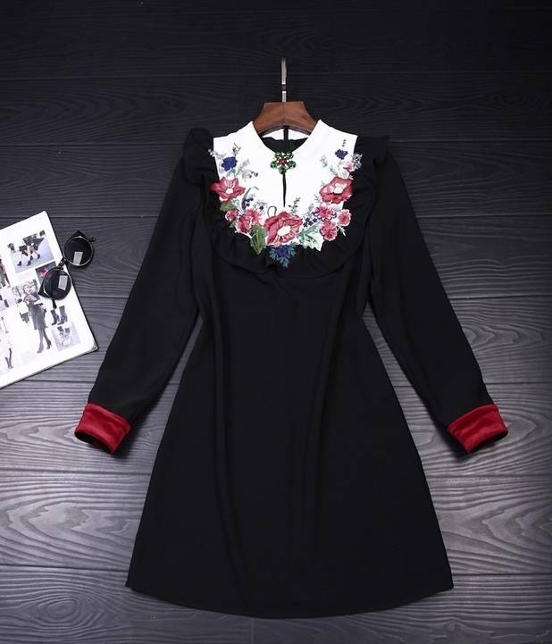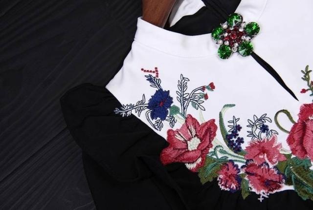 パーティーワンピース ミニ丈 ビジュー付き フリル 刺繍 フラワー 花柄 切り替え 可愛い パーティー お呼ばれ フォーマル 2018年新作