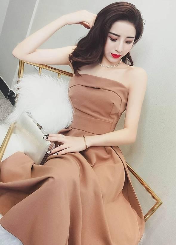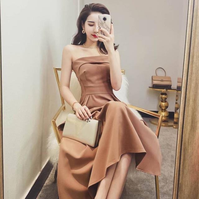 チューブトップ エレガント ロングフレアドレス 無地 ベアトップ ワンカラー フレア 上品 大人レディ レディース 2018年新作 定番