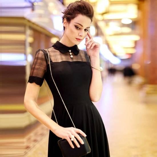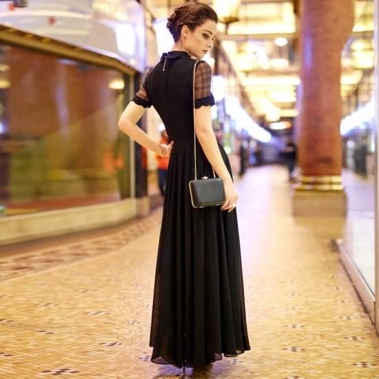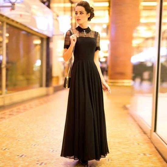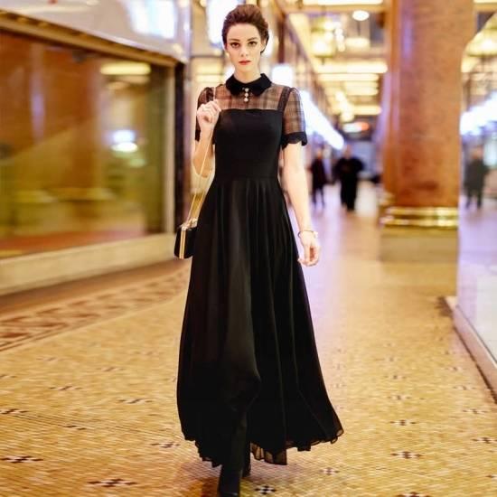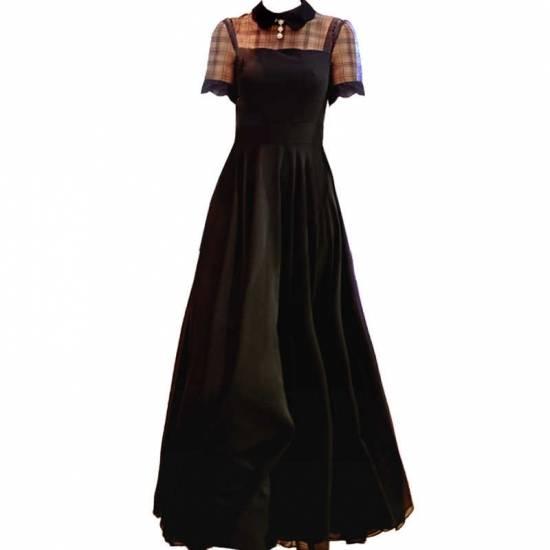 シャツカラー チェック シースルー切り替え マキシロングワンピース シンプル 綺麗 おしゃれ 可愛い 上品 清楚 デート 結婚式 二次会