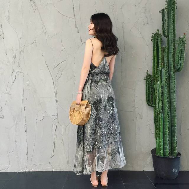 ホルターネック スパンコール ロングフレアドレス バックレス メタリック シースルー エレガント セクシー レディース 2018年新作 定番