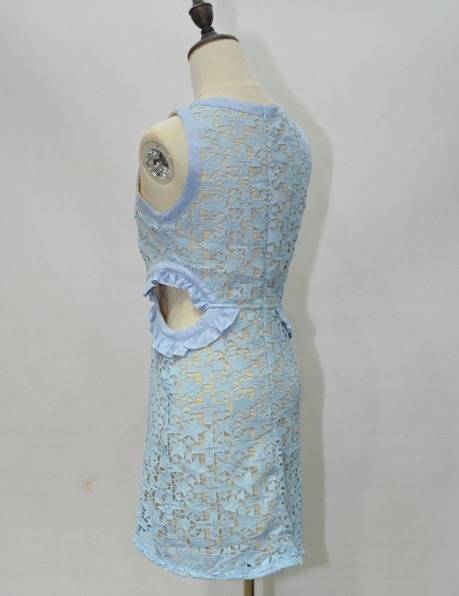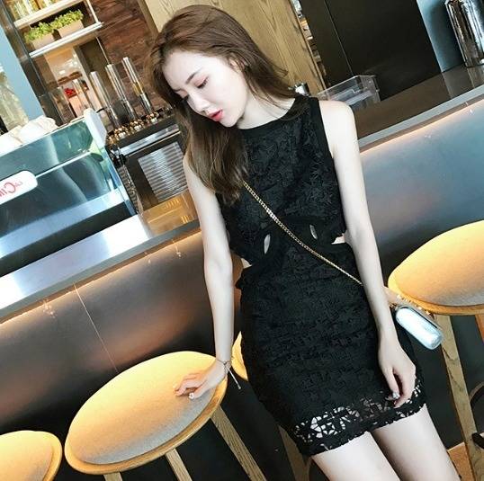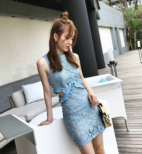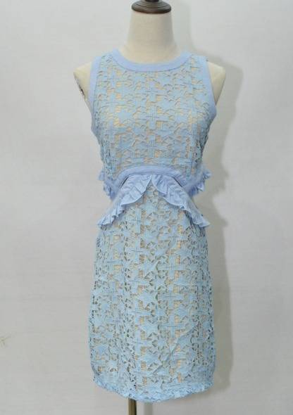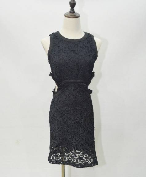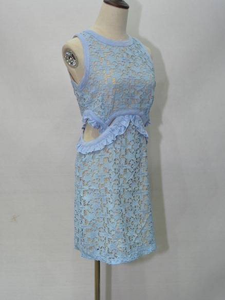 星柄パーティードレス 可愛い 総レース ノースリーブ 2色 スリム ミニ丈 タイト フリル 透け感 異素材ミックス おしゃれ パーティー