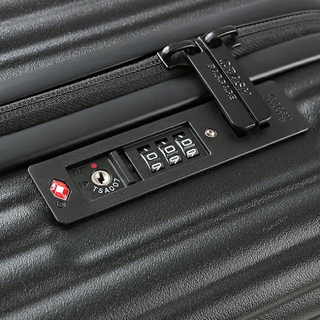| TSAロック標準搭載。TSAロックはアメリカ国土安全保障省の運輸保安庁によって認可・容認されたロックです。 | 大口径Wホイールを採用。2輪走行、4輪走行ともに安定した走行を実現しました。 |