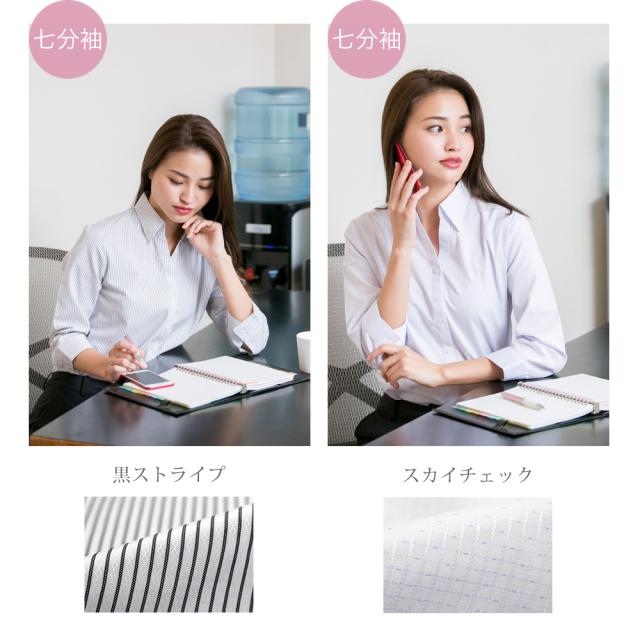 【七分袖 開襟】レディース シャツ 開襟 ブラウス ワイシャツ 定番 2枚は2通 メール便で送料無料 l-25-open-7s ビジネス フォーマル 形態安定 オフィス OL 事務服 おしゃれ yシャツ 制服 カッターシャツ
